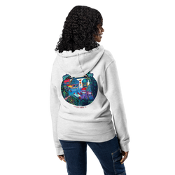 This zip hoodie is soft and warm, with a relaxed fit and clean details. The style of direct-to-garment printing for this item is a little softer and lighter than the t-shirts and hoodies, giving it a comfy look.